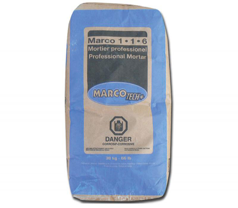 Le Mortier 1.1.6 est un mortier de type N pré mélangé à base de chaux hydratée type S et de ciment portland principalement utilisé pour la pose de briques, blocs, pierres et autres produits de maçonnerie. Il peut être utilisé à l'intérieur comme à l'extérieur. Sa formulation unique lui confère des propriétés accrues d’adhérence, de maniabilité et de d’imperméabilité ainsi qu’une résistance exceptionnelle aux cycles de gel-dégel. Le Mortier 1.1.6 est conforme à la norme CSA A179-04 pour un mortier de type N, avec ajout d’eau.
