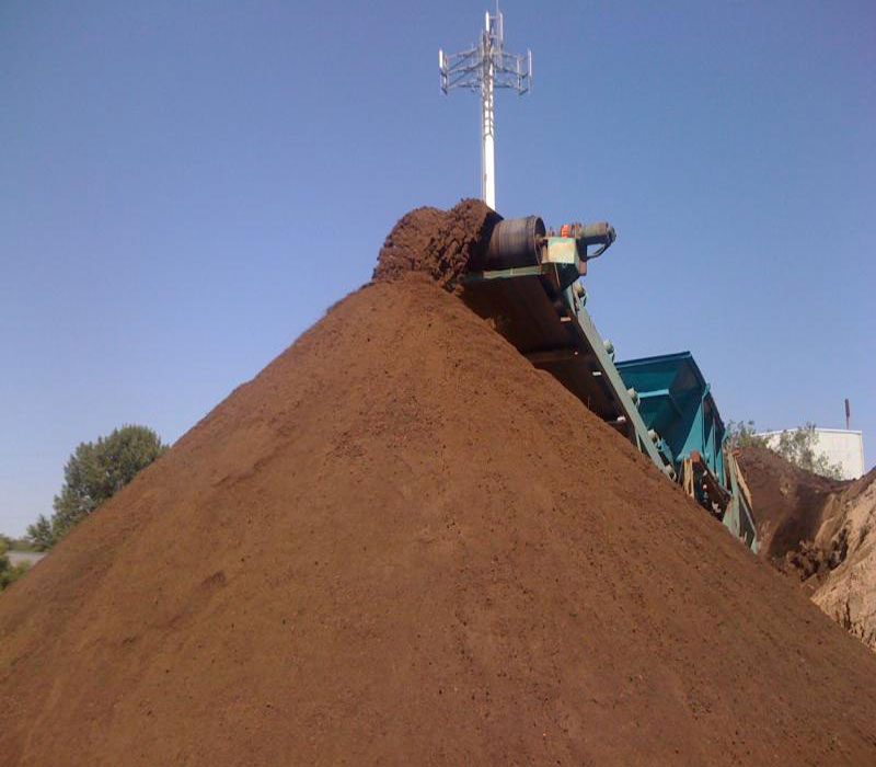 Mélange tamisé de terre de remblais, de sable et de compost de crevette.
