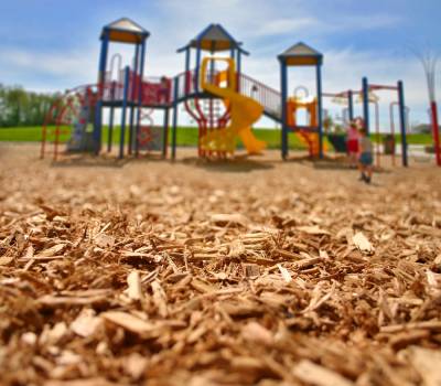 La fibre de bois pour aires de jeux permet de créer une surface de jeux sécuritaire, lorsqu'elle est appliquée selon les recommandations. Elle permet de réduire les risques de blessures en cas de chute, par sa capacité d'absorption des chocs.