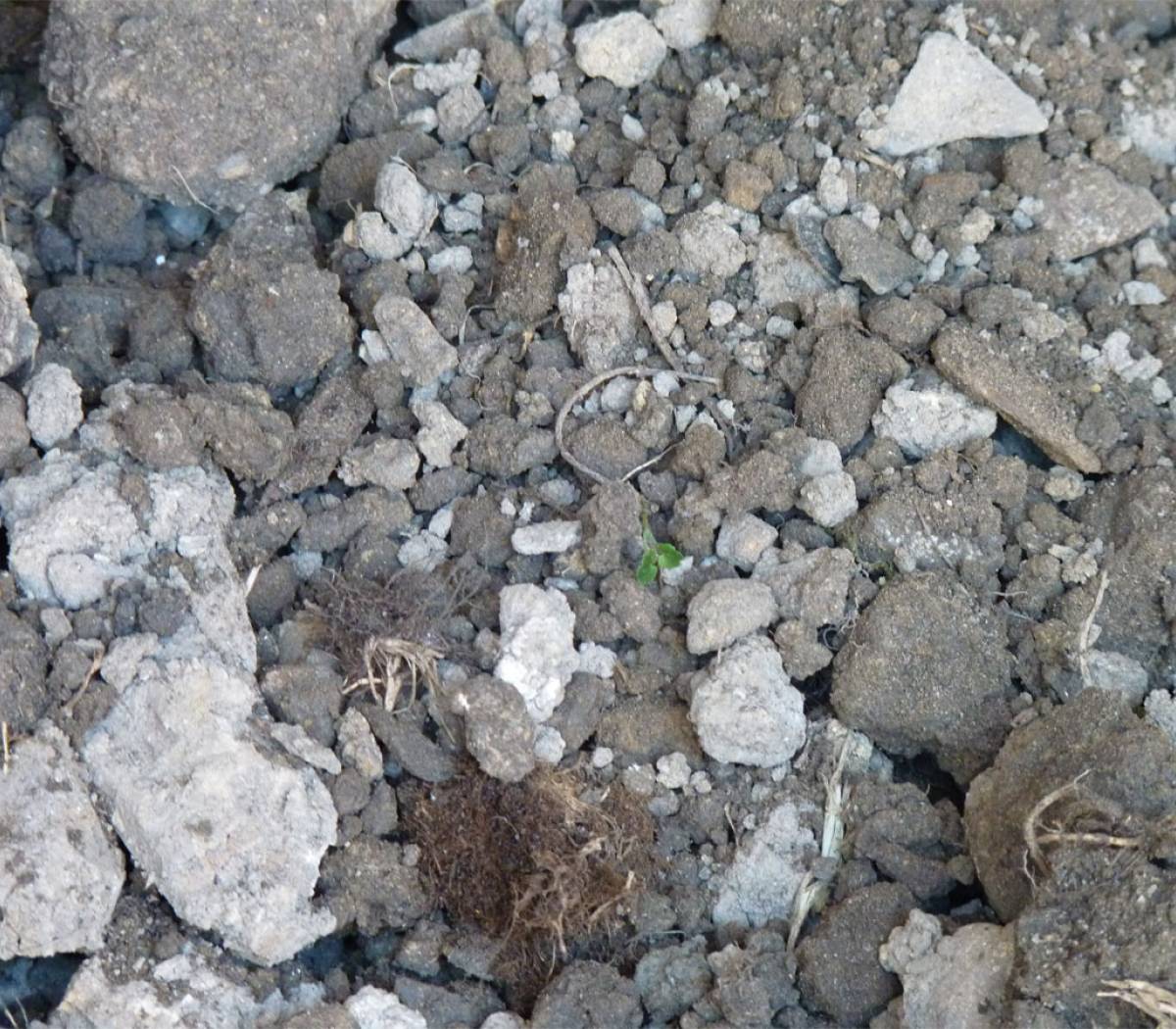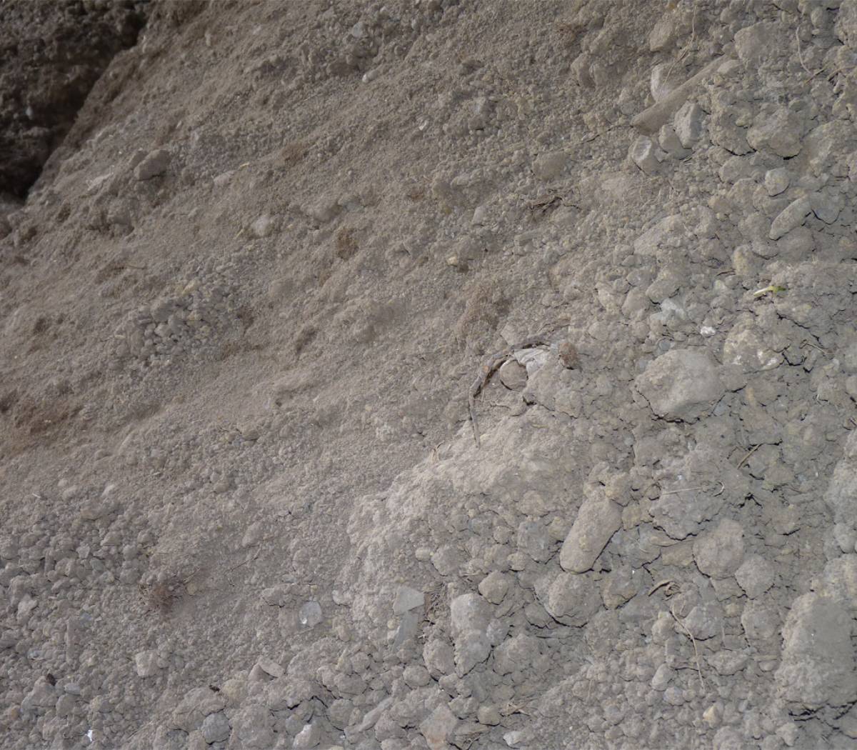La terre de remblai non tamisée contient des cailloux, des branches et autres rebuts d'excavation.