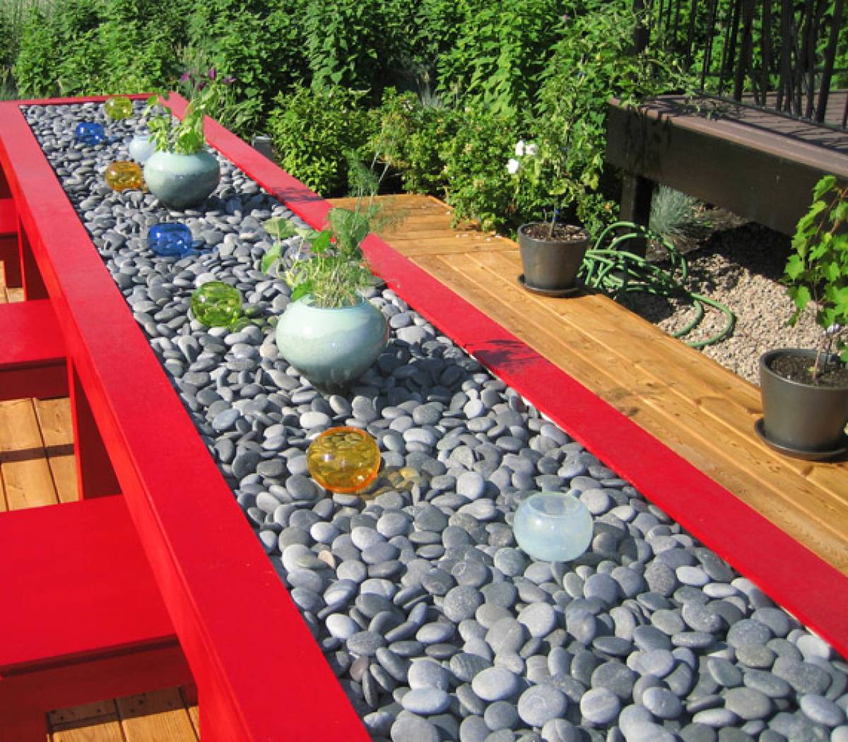 Bordures et allées, Jardins de rocailles japonais et plate-bandes, Étalages et accents décoratifs, Vases et arrangements floraux. Création artisanale.