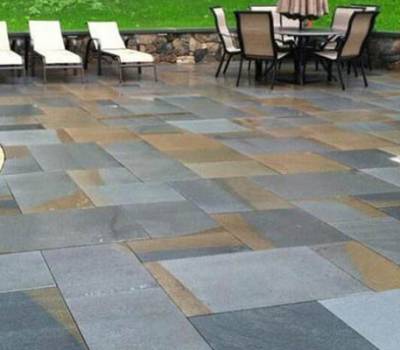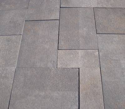 Les dalles sont sciées avec un finis flambée.