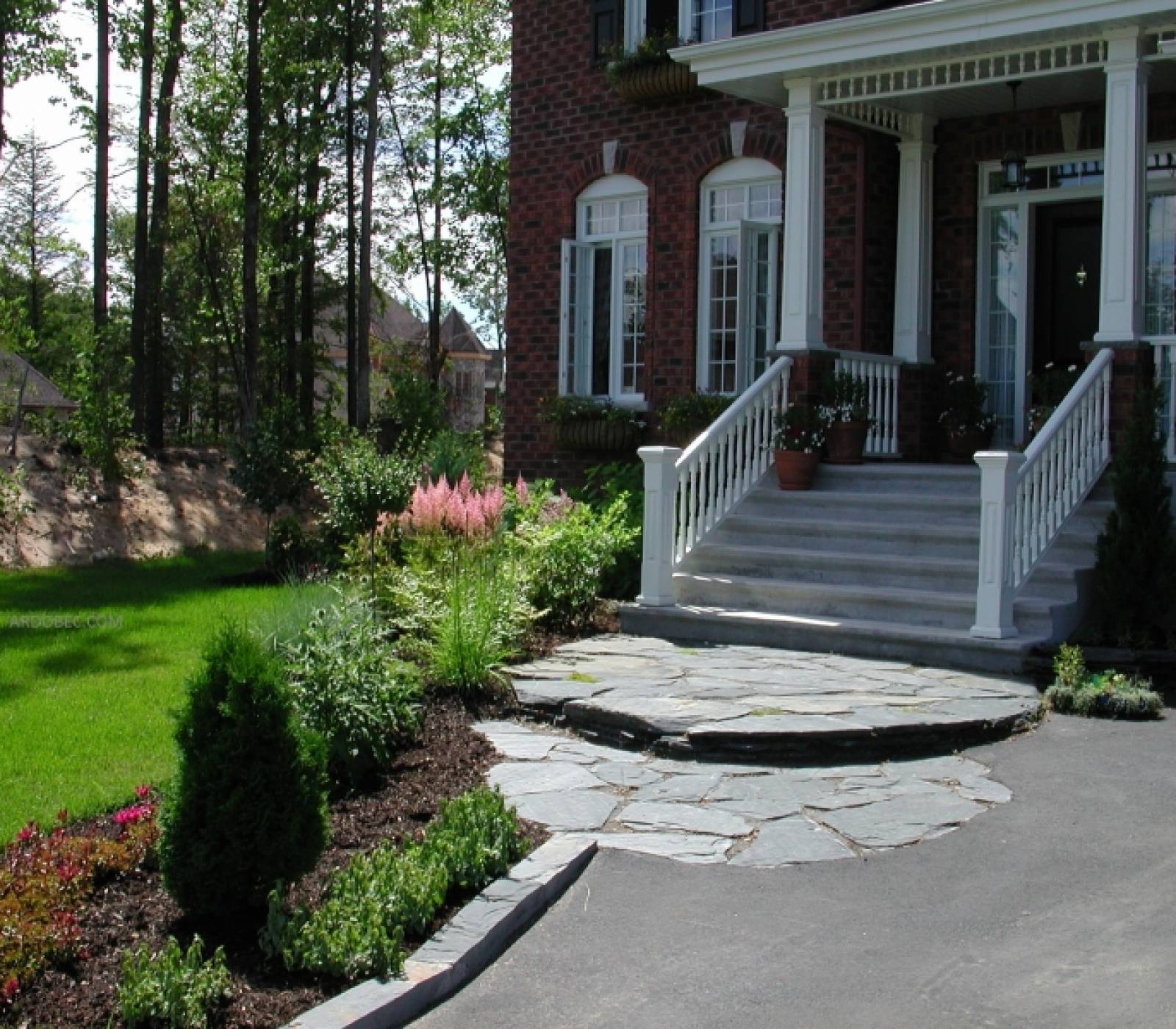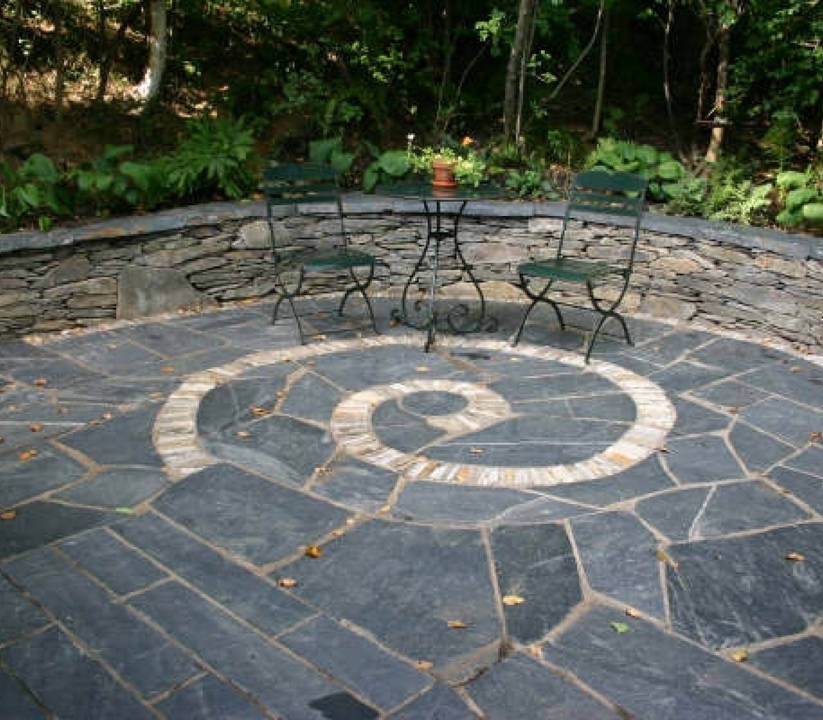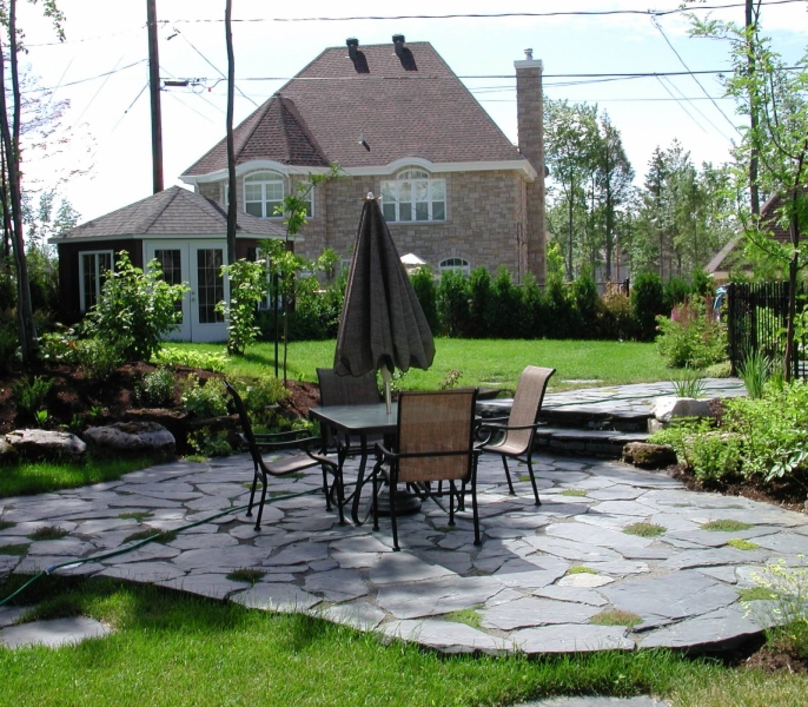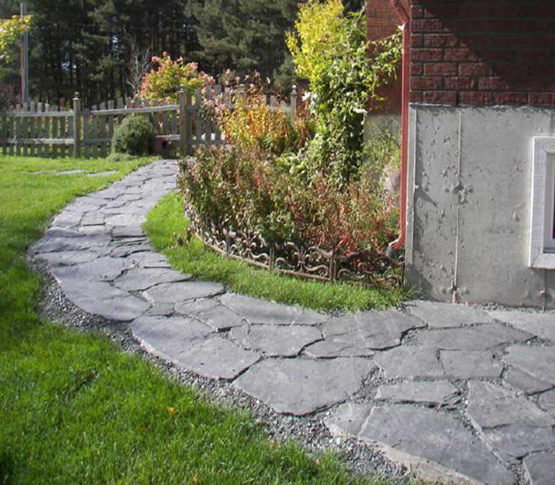 Les ardoises pour patios sont des pierres avec une surface plane et un clivage naturel. Le pourtour est naturel, l’épaisseur peut varier suivant les plans de clivage. Ces pierres ont beaucoup de charme et sont facile à installer. Pour des pas espacés, il suffit d’enlever la tourbe et d’y insérer la pierre.
