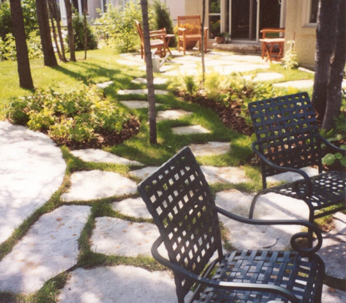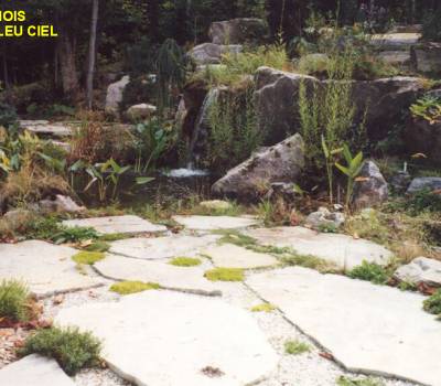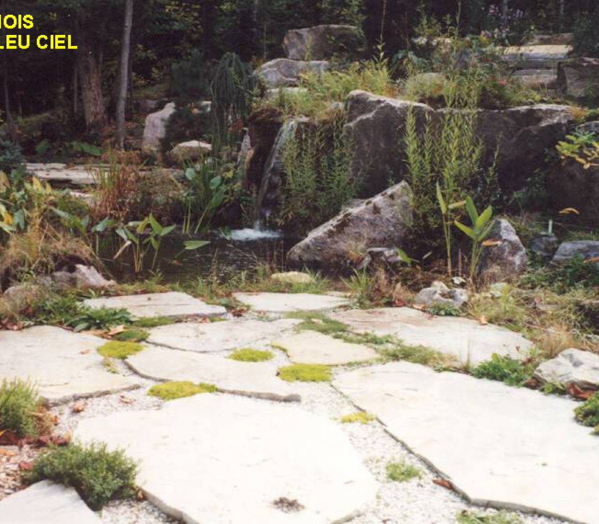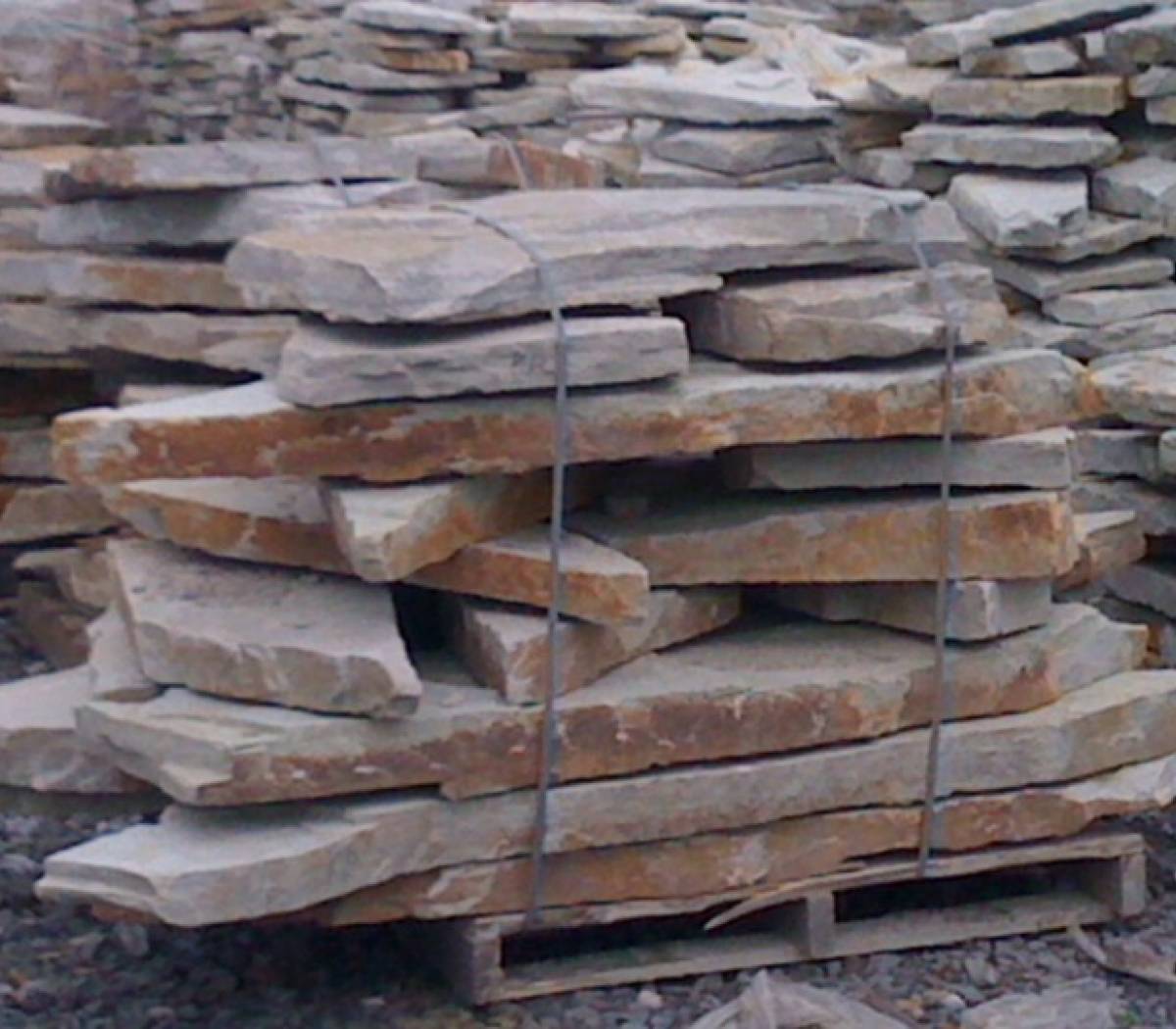Pierre de grand format utilisée pour la construction de patio, de trottoir, pas de jardin, cascade d'eau, ect.