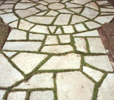 Pierre de forme irrégulière pouvant varier de 3 à 15 pieds carrés de superficie et d'une épaisseur variant de +/- 2-1/2" à 4-1/2".
