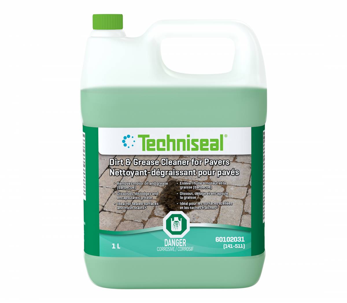 Le Nettoyant-Dégraissant pour pavés de Techniseal® enlève les taches d’huile à moteur et de graisse (barbecue) sur les pavés de béton. Recommandé pour les surfaces scellées et les taches fraîches, il dissout, déloge et encapsule la graisse, assurant un nettoyage complet qui ne laisse aucune pellicule graisseuse au rinçage.